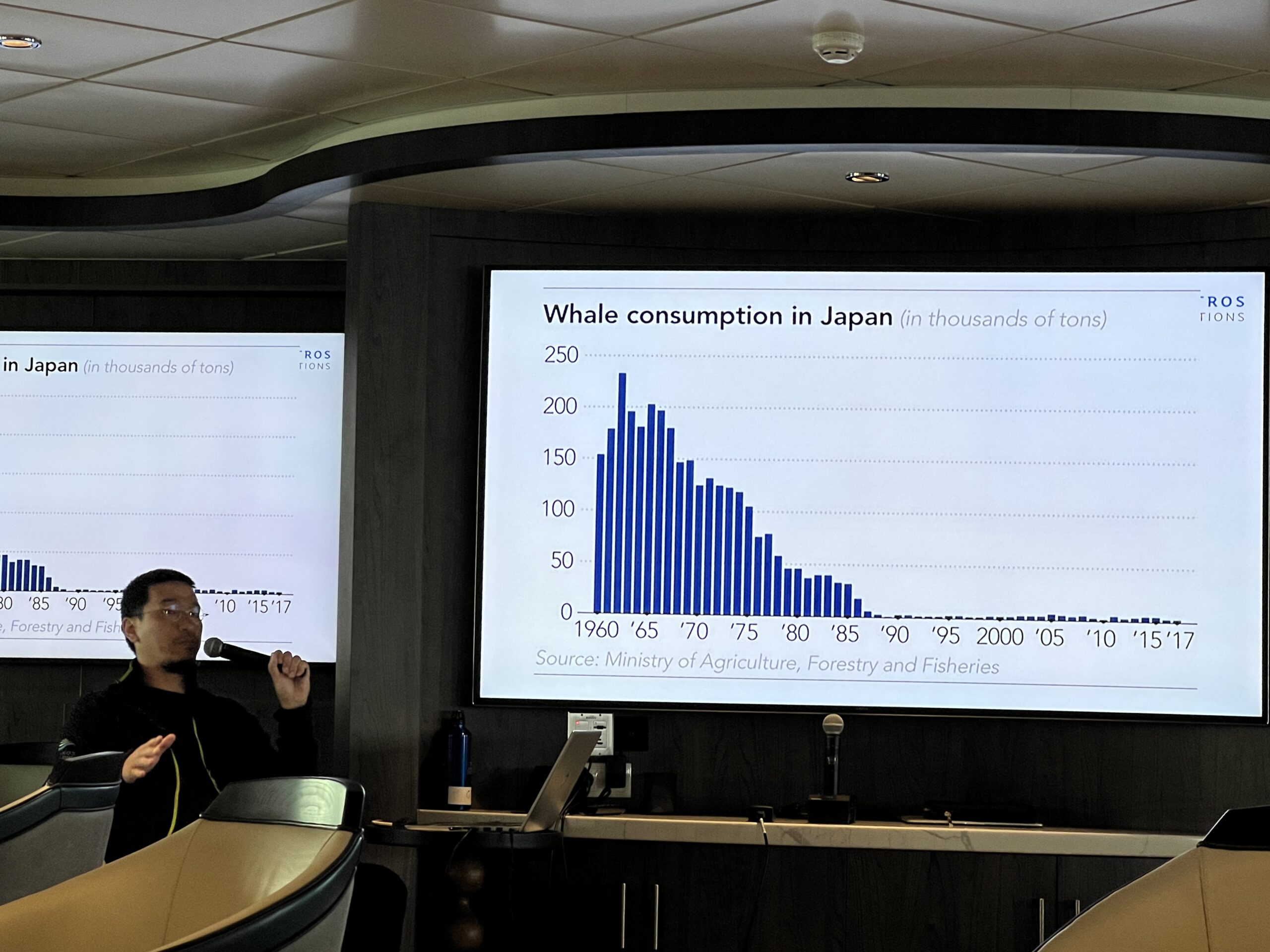 Onboard, we tracked the daily consumption of resources with startling precision—meats, seafood, and even toilet paper—reminding us of the sheer amount of goods that sustain such a voyage. For instance, in our two-week journey, we consumed: