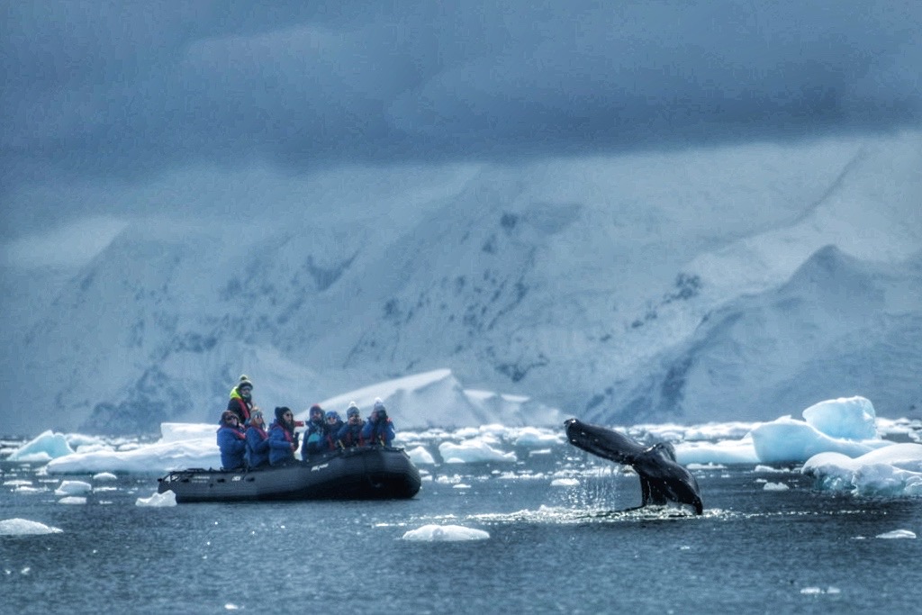 As we stood on that small stretch of beach, we marveled at the icebergs and glaciers surrounding us. We knew that the tide would soon start to encroach on our landing site, reminding us once again of the ever-changing nature of this wild land. Our group returned to the Zodiacs for a short cruise, getting up close to the icebergs that loomed like ancient sentinels over the landscape.