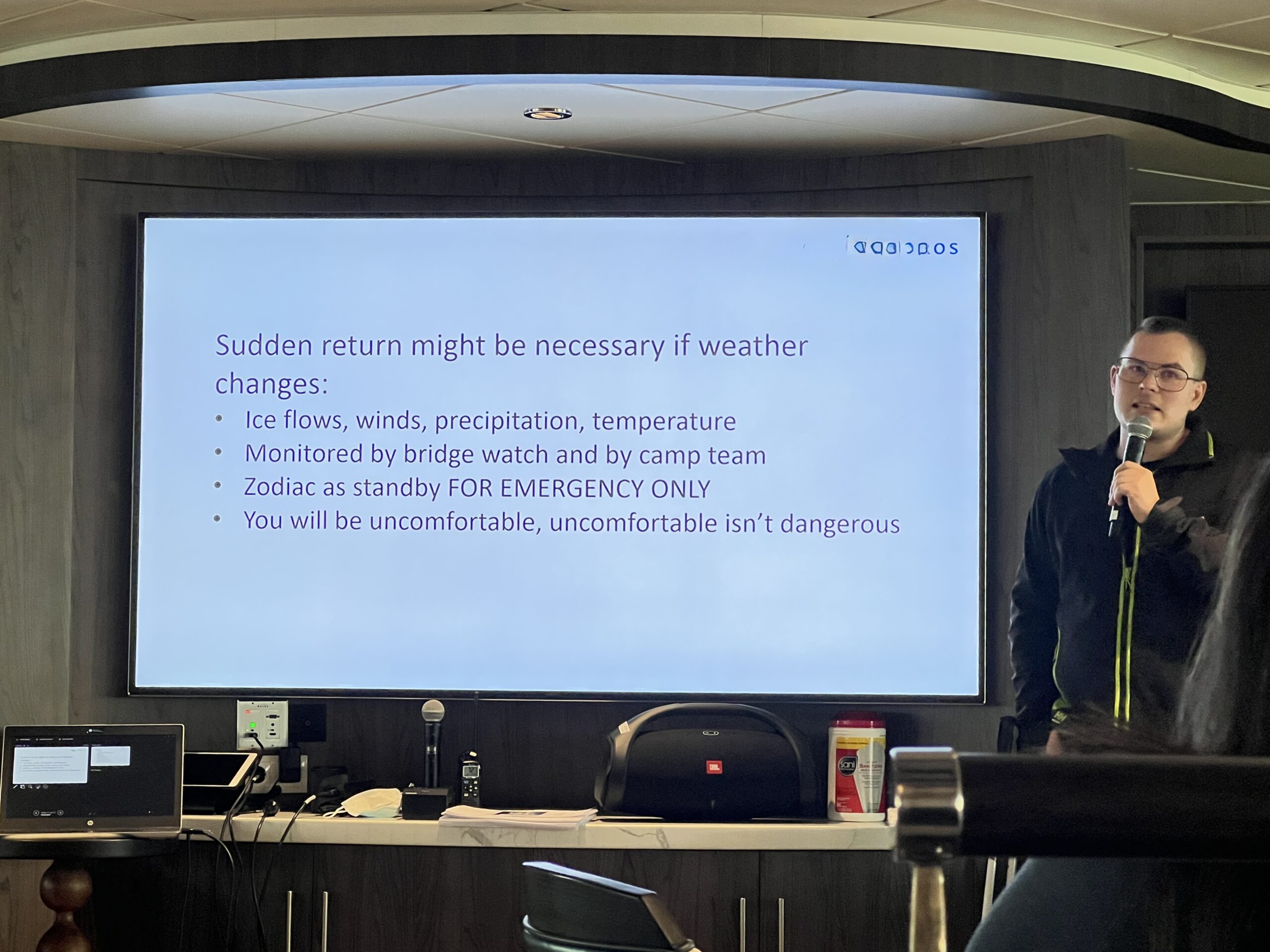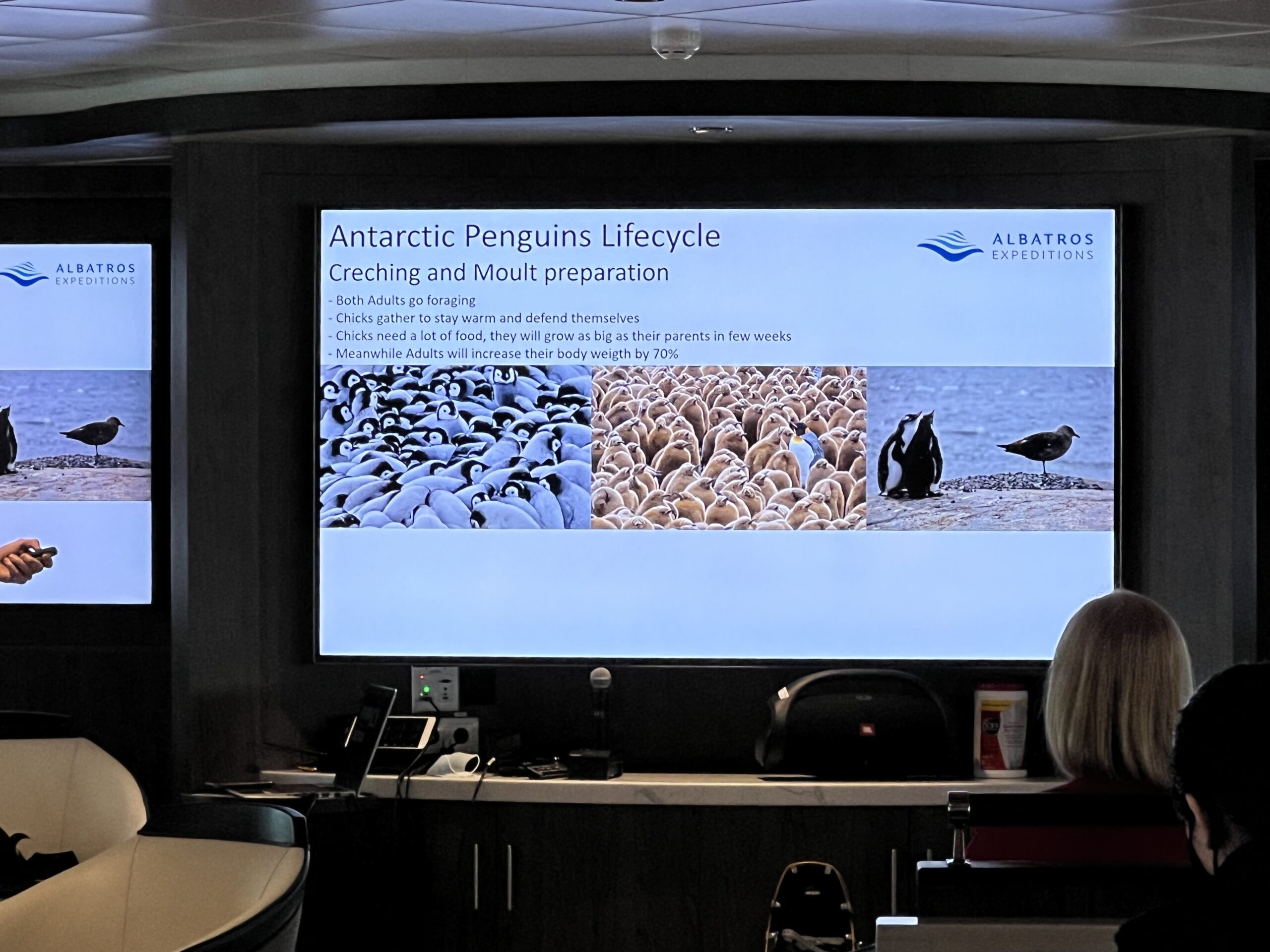 Later, Sanne, one of our expedition leaders, gave an enlightening lecture on whales and their incredible role in the Antarctic ecosystem, while Mariam filled us in on the research conducted at the Argentinian Antarctic research base. It was a fascinating day of learning and discovery.